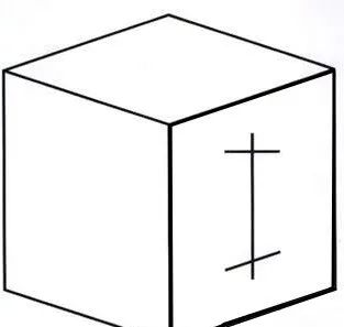 1、盒子幻觉:看立方体外侧面上的这个图形。哪条线与竖线垂直?哪条线不与竖线垂直?