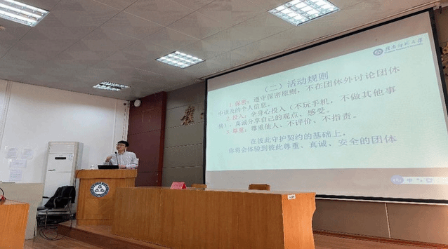 陈延斌老师以“如何开展心理健康教育主题班会—以团体辅导形式开展心理班会工作交流”为题,分别从“团体辅导在班会中的运用”“什么是团体辅导”“生命教育班会课件使用指南”三个方面,重点讲解了团体辅导在心理健康教育班会中的重要性,并采用现场互动式教学的形式,让在场教师深切感受到团体辅导对于加强师生交流、促进学生心理健康发展的积极成效。