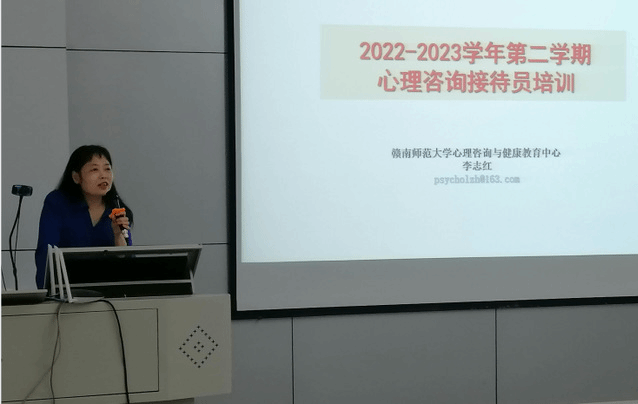 为了提高心理咨询接待员队伍的整体素质,促进心理咨询接待工作的质量和水平,2023年3月23日星期四晚,心理咨询与健康教育中心在人文科技中心102室开展了“2022-2023学年第二学期心理咨询接待员培训”活动。本次培训由中心副主任李志红老师主讲,中心专职教师邓丽群以及20名接待员参加了本次培训。