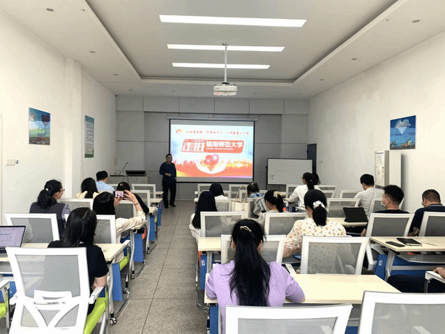 为响应教育厅“万师润万心”心理健康大行动,提高学生心理工作队伍的心理育人能力,完善我校心理危机预警系统,5月4日,赣南师范大学心理咨询中心钟华教授,以“大学生常见精神障碍的识别与应对策略”为主题,在心理健康中心102为全校辅导员队伍作培训专题讲座。各个学院辅导员与心理健康中心专职老师等到场聆听。