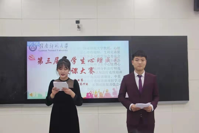 11月19日,我校第三届大学生心理成长微课大赛决赛在一教323智慧教室举行。学生工作部(处)、马克思主义学院有关负责同志和各学院心理督导员观看比赛。