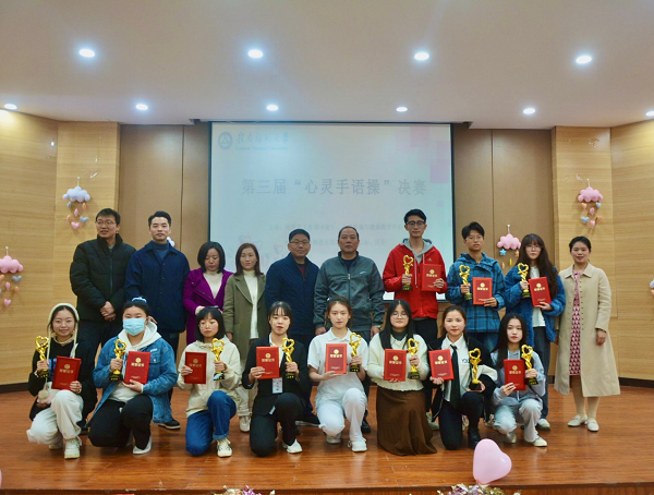 11月27日,我校第三届心理委员“心灵手语操”比赛在10教129科报厅举行。学生工作部(处)、文学院有关负责同志和各学院心理督导员观赛。
