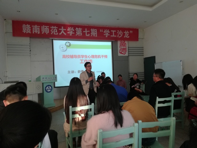 为了提升我校辅导员心理危机干预工作的质量,11月5日下午,由学工部(处)主办的“学生心理危机干预工作坊 ”在人文科技中心102室举行。本次工作坊特邀华东交通大学舒曼教授主讲,我校全体辅导员参加了本次心理危机干预培训工作坊。