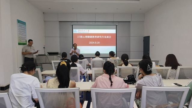 9月20日,心理中心成功举办了23级心理健康教育专业研究生见面会,旨在对23级心健专业研究生的校内实训进行讲解。教育科学学院副院长邓小平老师、学工处王志庆副处长、心理中心全体老师以及23级心理健康教育专业全体研究生出席了此次活动。