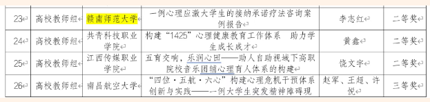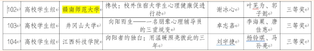 《校外住宿大学生心理健康促进行动》获得2025年江西省大中小学心理健康 教育优秀案例 (高校学生组)三等奖。