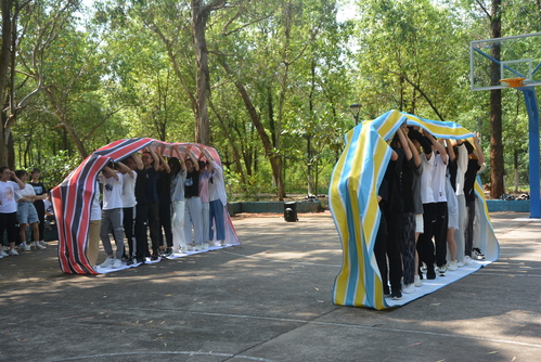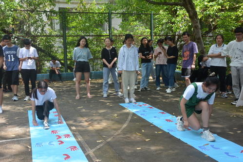 此次挑战赛设置“团队展示”“车轮滚滚”“摸石头过河”“手脚并用”“一传到底”“我们是最棒的团队”等六个比赛项目。2020级各班代表同学积极参赛。