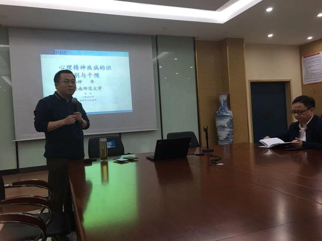 会上,钟华详细讲解了心理精神疾病的识别与干预方法,围绕班主任如何关爱学生、贴近学生、服务学生提出了有效建议,并结合相关案例与在场班主任进行答疑交流。