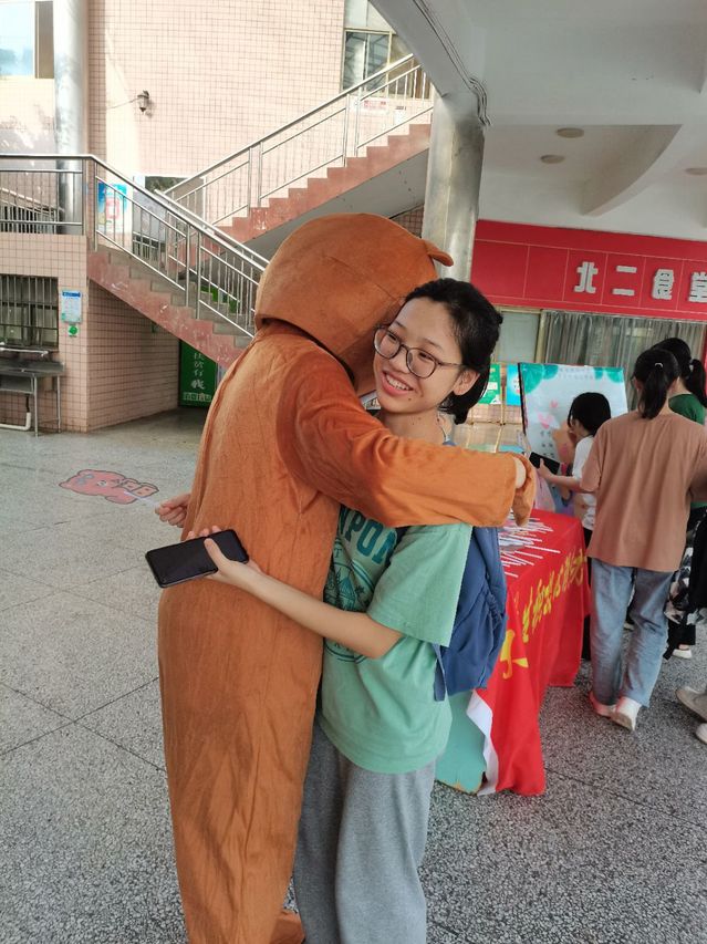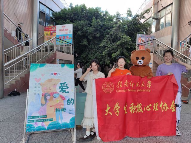 5月25日下午4时,协会的三位负责人带上精美礼物和治愈海报来到北苑食堂门口支起“爱的小摊”,向大家宣传大学生心理健康日的相关知识。活动现场形象可爱的卡通人物吸引了路过的同学们,大家纷纷与卡通人物合影拥抱,并在海报上留下自己对家人,对朋友的感恩和祝福,最后每位参与活动的同学都会获得了准备的小礼物一份,此次活动让大家获得快乐的同时,更传达了“爱自己,爱他人”的美好理念。